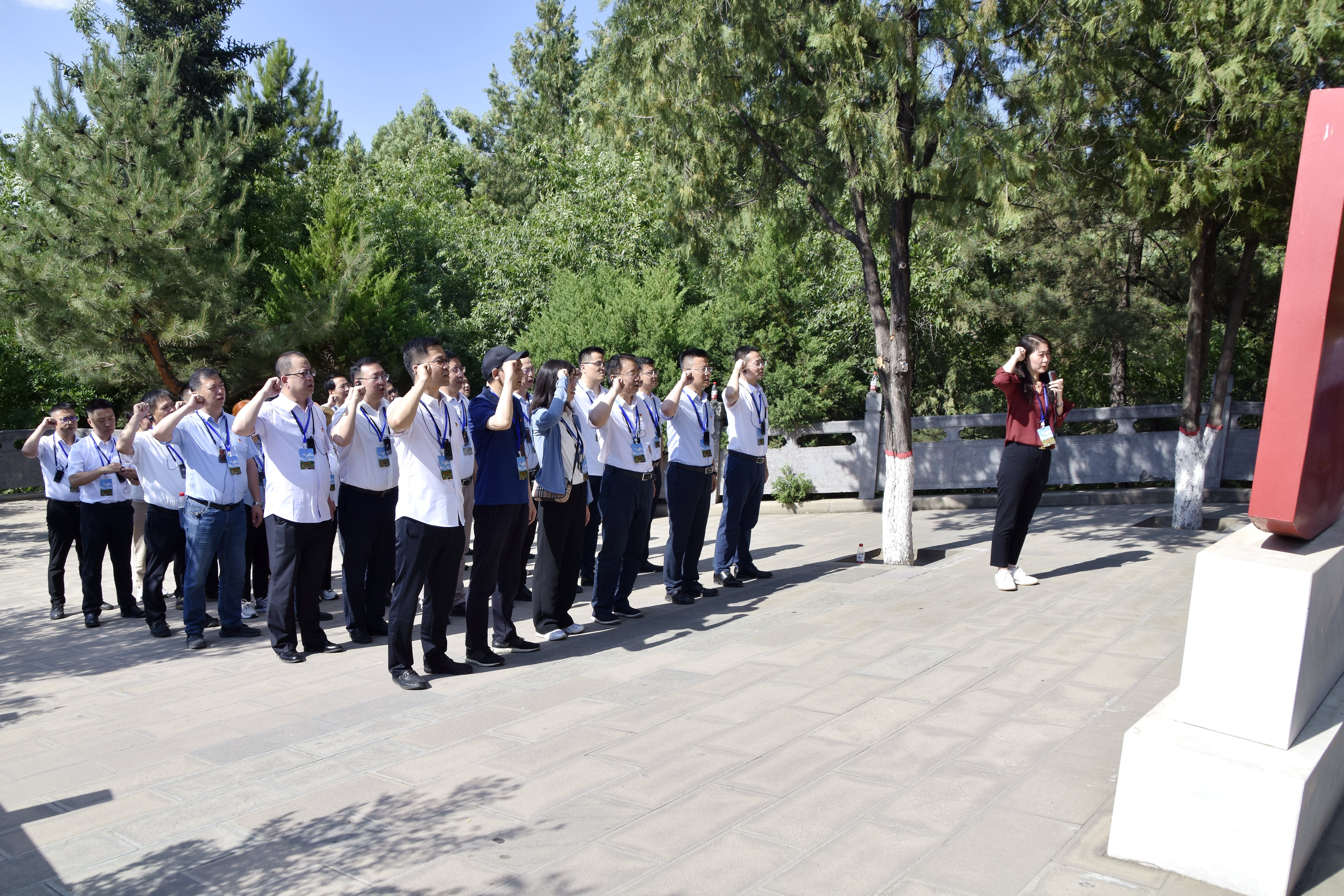 巍巍寶塔山,見證了中國共產(chǎn)黨從勝利走向新的勝利的光輝歷史;滾滾延河水,映射出中國共產(chǎn)黨人的初心和使命。學員們登上寶塔山,一邊聆聽講解員講述寶塔歷史和延安軍民當年艱苦奮斗故事,一邊感受著延安厚重的文化底蘊和紅色革命精神。黨員們面對黨旗,舉起右拳,重溫入黨誓詞,再次莊嚴地許下自己的諾言:“我志愿加入中國共產(chǎn)黨,擁護黨的綱領,遵守黨的章程……”