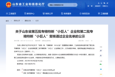根據(jù)山東省工業(yè)和信息化廳2023年7月14日公布的《關(guān)于山東省第五批專精特新“小巨人”企業(yè)和第二批專精特新“小巨人”復(fù)核通過企業(yè)名單的公示》,中節(jié)能大數(shù)據(jù)有限公司下屬山東中節(jié)能天融環(huán)保技術(shù)有限公司成功入選第五批國家級專精特新“小巨人”企業(yè)。