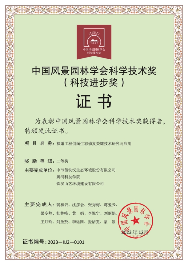 面對裸露工程創(chuàng)面,地表生態(tài)如何修復,中節(jié)能鐵漢的創(chuàng)新做法是——構(gòu)建可持續(xù)的擬自然植被!日前,中國風景園林學會為“2023年度中國風景園林學會科學技術(shù)獎”獲獎單位頒發(fā)了榮譽證書,由中節(jié)能鐵漢申報的《裸露工程創(chuàng)面生態(tài)修復關(guān)鍵技術(shù)研究與應用》獲科技進步獎二等獎,為該類場景生態(tài)修復提供創(chuàng)新解決方案。該項目去年底還攬獲了2023年度廣東省勘察設計行業(yè)協(xié)會科學技術(shù)獎三等獎。