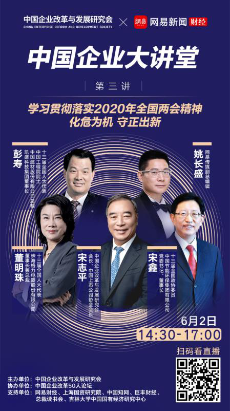 6月2日,由中國企業(yè)改革與發(fā)展研究會(huì)主辦、中國企業(yè)改革50人論壇協(xié)辦的“中國企業(yè)大講堂(第三場)暨學(xué)習(xí)貫徹落實(shí)2020年全國兩會(huì)精神”遠(yuǎn)程講座在線舉辦。本期講座聚焦“化危為機(jī),守正出新”“提升科技創(chuàng)新能力,助力中國新基建”等主題,圍繞如何在危機(jī)中育新機(jī),在變局中開新局進(jìn)行深入探討。 集團(tuán)公司黨委書記、董事長宋鑫圍繞“推動(dòng)節(jié)能環(huán)保產(chǎn)業(yè)高質(zhì)量發(fā)展”作主題分享。他認(rèn)為,“后疫情”時(shí)代,大家對環(huán)境保護(hù)的認(rèn)識不斷加深,為節(jié)能環(huán)保產(chǎn)業(yè)的發(fā)展帶來重要機(jī)遇期。他提出,在未來的工作中,中國節(jié)能將把長江流域治理、黃河治理、農(nóng)村生態(tài)問題、南方城市供暖問題以及三峽流域環(huán)境保護(hù)問題等作為重中之重,讓我國的綠水青山與金山銀山常在。 會(huì)上,宋鑫還與參加本期講座的中國企業(yè)研究會(huì)會(huì)長宋志平,珠海格力電器股份有限公司董事長兼總裁董明珠,中國工程院院士、凱盛科技集團(tuán)公司董事長彭壽圍繞“科技創(chuàng)新”“新基建”等熱點(diǎn)話題進(jìn)行了對話研討。 本期講座通過網(wǎng)易財(cái)經(jīng)、新浪財(cái)經(jīng)、中國知網(wǎng)等多個(gè)平臺同步直播,巨豐財(cái)經(jīng)錄播,累計(jì)觀看量突破320萬人次。 據(jù)了解,“中國企業(yè)大講堂”是中國企業(yè)研究會(huì)、網(wǎng)易財(cái)經(jīng)、巨豐財(cái)經(jīng)等攜手推出的系列活動(dòng)。“中國企業(yè)大講堂”系列活動(dòng)立足國內(nèi)外疫情防控和經(jīng)濟(jì)形勢的階段性變化,采用線上直播的方式,匯聚智力資源,打造一流智庫平臺,邀請相關(guān)領(lǐng)導(dǎo)、優(yōu)秀企業(yè)家、著名經(jīng)濟(jì)學(xué)家、知名專家、企業(yè)改革發(fā)展優(yōu)秀成果創(chuàng)造人等圍繞我國廣大企業(yè)在改革發(fā)展進(jìn)程中遇到的重點(diǎn)、熱點(diǎn)問題,為廣大企業(yè)改革發(fā)展提供可靠的決策依據(jù);分享改革發(fā)展成果,強(qiáng)化企業(yè)風(fēng)險(xiǎn)防范意識,以產(chǎn)業(yè)鏈再升級助推企業(yè)實(shí)現(xiàn)高質(zhì)量發(fā)展,幫助我國企業(yè)在新的挑戰(zhàn)面前危中求機(jī),促進(jìn)我國企業(yè)持續(xù)健康發(fā)展。