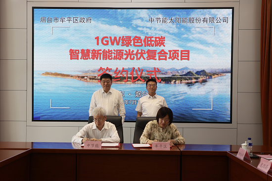 7月12日,集團(tuán)公司所屬太陽能公司與煙臺(tái)市牟平區(qū)政府簽署1GW綠色低碳智慧新能源光伏復(fù)合項(xiàng)目合作協(xié)議,集團(tuán)公司黨委副書記、總經(jīng)理劉家強(qiáng),煙臺(tái)市牟平區(qū)委副書記、區(qū)長(zhǎng)李劍出席簽約儀式。太陽能公司董事長(zhǎng)、總經(jīng)理張會(huì)學(xué),牟平區(qū)副區(qū)長(zhǎng)孫輝代表雙方簽署協(xié)議。