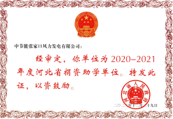 風(fēng)電張家口公司榮獲“河北省捐資助學(xué)單位”榮譽(yù)稱號 |