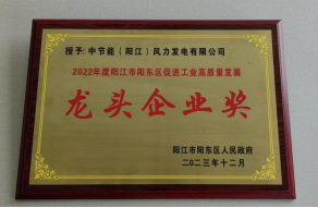 【提質(zhì)增效年】風(fēng)電陽江公司獲陽江市陽東區(qū)促進(jìn)工業(yè)企業(yè)高質(zhì)量發(fā)展“龍頭企業(yè)獎” |