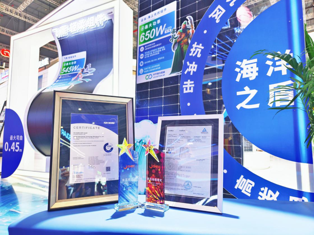 近日,太陽能公司攜多款拳頭產(chǎn)品與一體化服務方案亮相2024SNEC第十七屆國際太陽能光伏與智慧能源(上海)大會暨展覽會。 會上,歐洲權威檢測機構德國萊茵TüV為太陽能公司“飛燕系列”“云長系列”組件頒發(fā)認證證書,其中“飛燕系列”組件獲得國內(nèi)首張柔性組件認證證書。在SNEC“十大技術亮點”評選活動中,“飛燕系列0BB N型Topcon柔性組件”“云長系列高效0BB海上光伏組件”分別獲得吉瓦級金獎和兆瓦級翡翠獎。