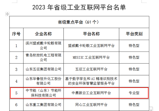 中節(jié)能實(shí)業(yè)下屬山東公司“中晨碳云工業(yè)互聯(lián)網(wǎng)平臺(tái)”評(píng)為山東省級(jí)重點(diǎn)平臺(tái) |