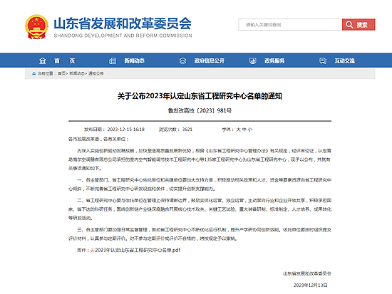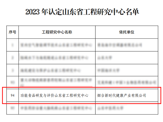 12月15日,山東省發(fā)展和改革委員會發(fā)布了2023年認定山東省工程研究中心名單,作為公司大健康公地建設(shè)重要項目,由健康產(chǎn)業(yè)公司煙臺生產(chǎn)基地牽頭,聯(lián)合山東省食品藥品檢驗研究院共建的“功能食品研發(fā)與評價山東省工程研究中心”成功獲批。