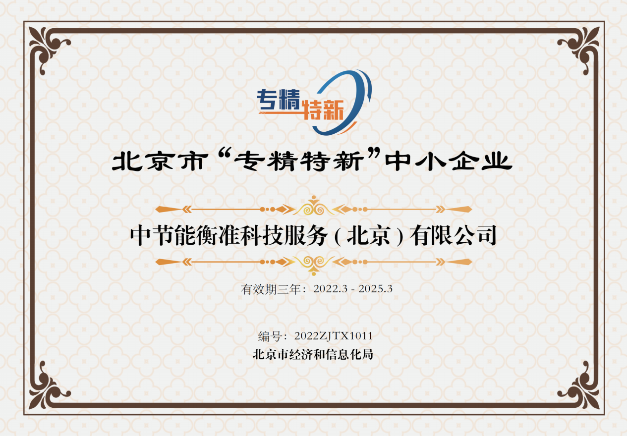 研究中心所屬衡準(zhǔn)公司取得北京市“專精特新”中小企業(yè)證書 |