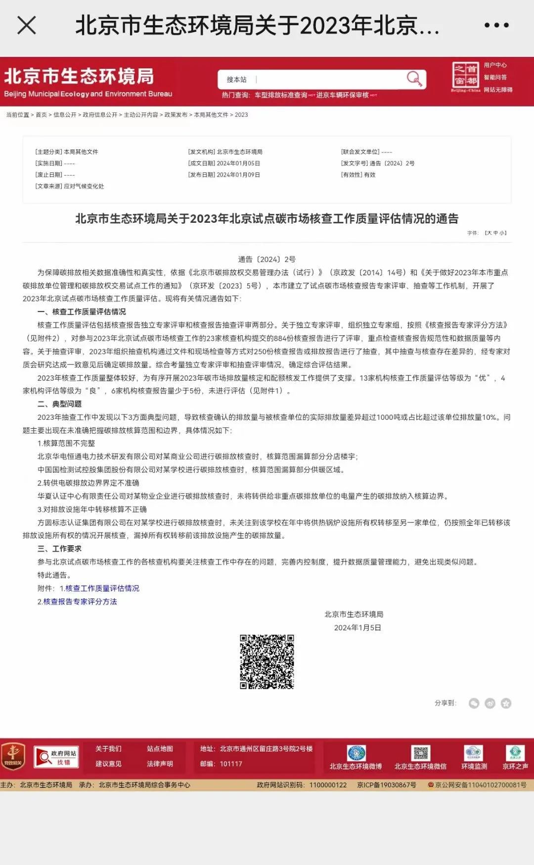 研究中心所屬中節(jié)能衡準(zhǔn)榮獲北京市生態(tài)環(huán)境局2023年北京試點碳市場核查工作質(zhì)量評估綜合評分第一名 |