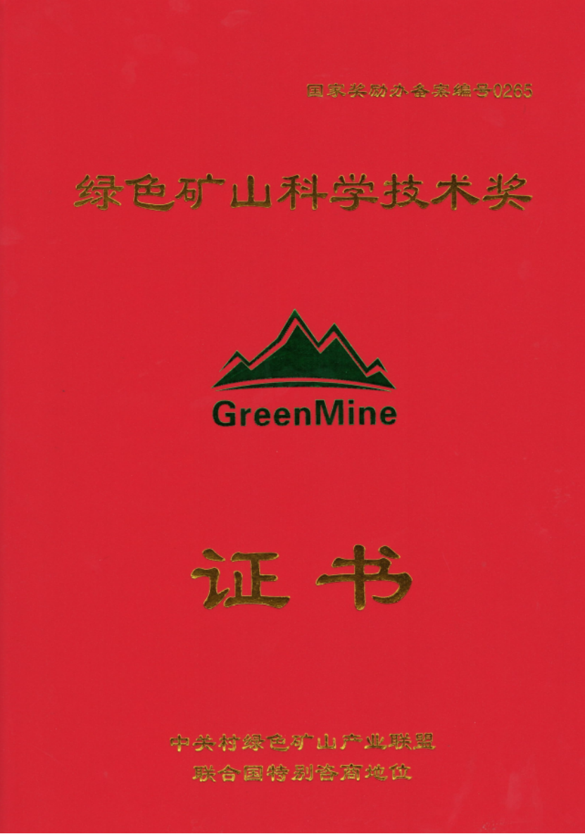綠色礦山科學(xué)技術(shù)獎(jiǎng)是2015年科技部國(guó)家科學(xué)技術(shù)獎(jiǎng)勵(lì)辦公室批準(zhǔn)中綠盟設(shè)立、國(guó)家獎(jiǎng)勵(lì)辦備案的社會(huì)科技獎(jiǎng)勵(lì),目的是為表彰在綠色礦山創(chuàng)建中做出貢獻(xiàn)的單位和個(gè)人,是該領(lǐng)域具有影響力和代表性的科技獎(jiǎng)勵(lì)。