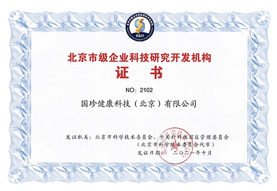 新時(shí)代集團(tuán)下屬國(guó)珍健康科技公司獲“北京市級(jí)企業(yè)科技研究開(kāi)發(fā)機(jī)構(gòu)”認(rèn)定 |