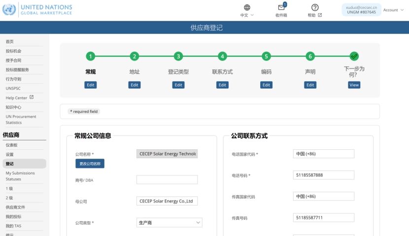 近日,太陽(yáng)能鎮(zhèn)江公司成功注冊(cè)為聯(lián)合國(guó)采購(gòu)一級(jí)供應(yīng)商,可參加世界貿(mào)易組織、聯(lián)合國(guó)項(xiàng)目事務(wù)署、貿(mào)易中心、亞行等聯(lián)合國(guó)22個(gè)組織機(jī)構(gòu)的招投標(biāo)。此次成為聯(lián)合國(guó)采購(gòu)供應(yīng)商,是企業(yè)自身軟實(shí)力、影響力的體現(xiàn),為增加企業(yè)知名度、拓展國(guó)際市場(chǎng)奠定了堅(jiān)實(shí)基礎(chǔ)。