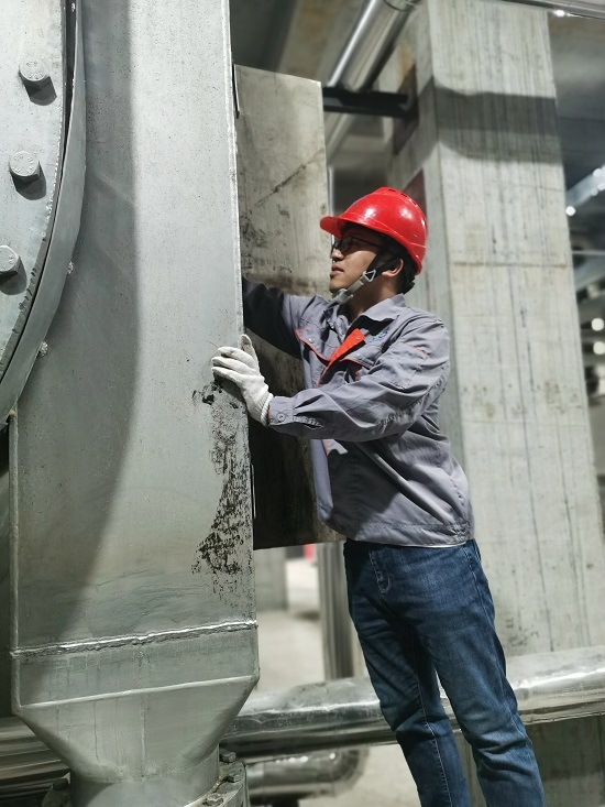 2019年10月,施工過程中由于有兩段刮板機(jī)必須在垃圾倉內(nèi)作業(yè),當(dāng)時(shí)倉內(nèi)氣體檢測儀顯示各項(xiàng)有毒有害氣體指數(shù)均超報(bào)警值,尤其一氧化碳濃度已超檢測儀量程,倉內(nèi)密閉溫度較高,粉塵濃度大,施工作業(yè)環(huán)境極為惡劣。但為了搶工期、趕進(jìn)度,在做好各項(xiàng)安全措施及詳細(xì)施工方案報(bào)審后,他克服困難,帶領(lǐng)其他施工人員,佩戴專業(yè)的防毒面罩進(jìn)入垃圾倉內(nèi)施工,全力保障項(xiàng)目工期順利推進(jìn)。