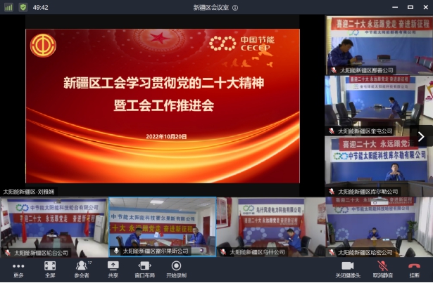 太陽能西中區(qū)、新疆區(qū)為深入學(xué)習(xí)宣傳貫徹黨的二十大精神,近日,各基層工會召開學(xué)習(xí)貫徹黨的二十大精神暨工會工作推進(jìn)會,集中學(xué)習(xí)黨的二十大報告,就學(xué)習(xí)貫徹好黨的二十大精神提出工作要求,并對下一階段工會工作進(jìn)行安排部署,在廣大干部職工中掀起學(xué)習(xí)討論熱潮。各級基層工會主席、委員參加會議。