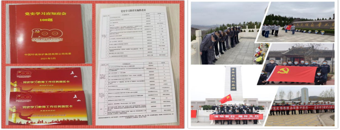 中國環(huán)保黨委深入貫徹落實(shí)集團(tuán)公司黨委部署要求,組織各基層黨組織積極做好再部署、再動員,采取多種形式,掀起學(xué)習(xí)熱潮,高標(biāo)準(zhǔn)推進(jìn)黨史學(xué)習(xí)教育落實(shí)落地。一是把規(guī)定動作做實(shí)。下屬棲霞公司黨支部通過開展“四個一”系列活動,列明9項規(guī)定動作,推動黨史學(xué)習(xí)教育走深走實(shí)。淶水公司黨支部制定“一月一專題”學(xué)習(xí)計劃表,將12個研討專題逐月推進(jìn),滄州公司黨支部開展每日一讀、每周一課、每月一測的“1+1+1”黨史學(xué)習(xí)教育;萍鄉(xiāng)公司黨支部采取“參觀見學(xué)、領(lǐng)導(dǎo)帶學(xué)、視頻看學(xué)、網(wǎng)絡(luò)助學(xué)、結(jié)隊幫學(xué)”五學(xué)模式,抓好基層黨員黨史學(xué)習(xí)教育。二是把自選動作做活。保定公司黨支部推出每周紅色觀影、“黨史百年”詩詞朗誦、紅歌合唱等活動;山東公司黨支部依托當(dāng)?shù)丶t色教育資源,組織開展實(shí)踐教學(xué)活動,煙臺公司和潤達(dá)公司黨支部聯(lián)合開展“憶黨史、銘黨恩、促黨建”跟著視頻學(xué)黨史活動;合肥公司黨支部組織開展“學(xué)黨史勵初心 開奮斗新征程”黨史知識競賽,教育引導(dǎo)廣大黨員學(xué)透歷史、學(xué)深思想、學(xué)出成效。三是把各環(huán)節(jié)工作做精。公司黨委緊密結(jié)合方案要求,為領(lǐng)導(dǎo)班子成員和各基層黨組織“量身定制”《黨史學(xué)習(xí)教育工作任務(wù)落實(shí)卡》,以項目化、清單化、責(zé)任化的方式,既明確“規(guī)定動作”內(nèi)容,又為“自選動作”指明方向。同時編印《黨史學(xué)習(xí)應(yīng)知應(yīng)會100題》口袋手冊,以知識題庫的形式分享黨史知識,推動黨史學(xué)習(xí)教育精細(xì)化、規(guī)范化。