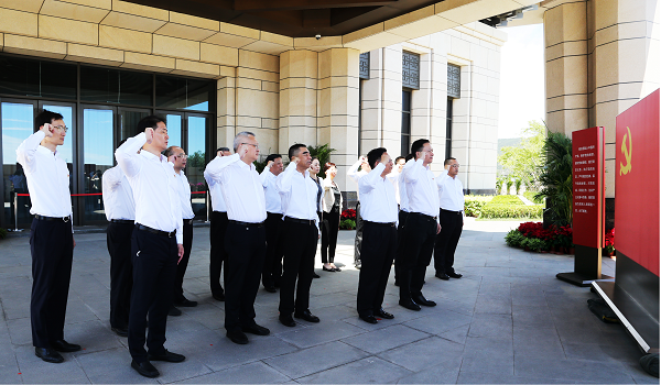 6月18日,中心組集中學(xué)習(xí)習(xí)近平《論中國(guó)共產(chǎn)黨歷史》、習(xí)近平總書記《學(xué)好“四史”,永葆初心、永擔(dān)使命》重要理論文章、《改革開(kāi)放和社會(huì)主義現(xiàn)代化建設(shè)時(shí)期的歷史》、中共中央辦公廳《關(guān)于在全社會(huì)開(kāi)展黨史、新中國(guó)史、改革開(kāi)放史、社會(huì)主義發(fā)展史宣傳教育的通知》《中國(guó)共產(chǎn)黨百年歷史與歷史主動(dòng)》以及國(guó)資委黨委召開(kāi)國(guó)資委暨中央企業(yè)黨史學(xué)習(xí)教育指導(dǎo)組工作會(huì)議精神等,與會(huì)人員結(jié)合兩天來(lái)的學(xué)習(xí)思考,進(jìn)行了研討交流。 宋鑫指出,要堅(jiān)持學(xué)史明理,感悟思想偉力,進(jìn)一步推動(dòng)學(xué)習(xí)貫徹習(xí)近平新時(shí)代中國(guó)特色社會(huì)主義思想走深走實(shí)。要把黨史作為“教科書”“營(yíng)養(yǎng)劑”“必修課”,把習(xí)近平總書記關(guān)于中國(guó)共產(chǎn)黨歷史重要論述作為重要內(nèi)容,原原本本學(xué)、逐字逐句學(xué)、全面系統(tǒng)學(xué)、結(jié)合實(shí)際學(xué),深入把握黨史背后的歷史邏輯、理論邏輯、實(shí)踐邏輯,從黨的百年非凡歷程中感悟馬克思主義的真理力量和實(shí)踐力量,系統(tǒng)掌握貫穿其中的馬克思主義立場(chǎng)觀點(diǎn)方法,進(jìn)一步提高政治領(lǐng)悟力、政治判斷力、政治執(zhí)行力。 宋鑫強(qiáng)調(diào),要堅(jiān)持學(xué)史增信,把握歷史規(guī)律,進(jìn)一步堅(jiān)定“四個(gè)自信”。要從黨的非凡歷程中讀懂強(qiáng)黨之路,深刻感悟黨的英明、偉大、正確,切實(shí)把信之源、信之用、信之效的問(wèn)題弄清楚搞明白,不斷在深學(xué)細(xì)悟中做到以史釋疑、以史為鏡、以史明志,堅(jiān)定不移為實(shí)現(xiàn)崇高理想和偉大目標(biāo)而奮斗。要通過(guò)黨史學(xué)習(xí)教育,把“四個(gè)自信”熔鑄于靈魂深處,堅(jiān)定對(duì)馬克思主義、共產(chǎn)主義的信仰,對(duì)中國(guó)特色社會(huì)主義的信念,對(duì)實(shí)現(xiàn)中華民族偉大復(fù)興中國(guó)夢(mèng)的信心,增強(qiáng)忠誠(chéng)核心、維護(hù)核心、看齊核心的政治自覺(jué)和行動(dòng)自覺(jué),堅(jiān)決做到黨中央提倡的堅(jiān)決響應(yīng)、黨中央決定的堅(jiān)決執(zhí)行、黨中央禁止的堅(jiān)決不做。 宋鑫指出,要堅(jiān)持學(xué)史崇德,賡續(xù)精神血脈,進(jìn)一步提振艱苦奮斗、勇攀高峰的精氣神。要傳承弘揚(yáng)黨在各個(gè)歷史時(shí)期形成的偉大精神、優(yōu)良作風(fēng)和革命傳統(tǒng),傳承紅色基因,賡續(xù)精神血脈,進(jìn)一步豐富教育形式,落實(shí)規(guī)定動(dòng)作,創(chuàng)新自選動(dòng)作,生動(dòng)鮮活講好黨的故事、革命故事、英雄故事、節(jié)能故事。要精心組織開(kāi)展集團(tuán)公司慶祝建黨100周年系列活動(dòng),進(jìn)一步匯聚廣大黨員干部職工邁進(jìn)新征程、奮斗新時(shí)代的正能量,以更加昂揚(yáng)的姿態(tài)、更加振奮的精神、更加務(wù)實(shí)的作風(fēng),積極投身建設(shè)節(jié)能環(huán)保健康領(lǐng)域具有世界競(jìng)爭(zhēng)力的一流企業(yè)的生動(dòng)實(shí)踐,不斷開(kāi)創(chuàng)集團(tuán)公司高質(zhì)量發(fā)展新局面。 宋鑫要求,要堅(jiān)持學(xué)史力行,勇于擔(dān)當(dāng)作為,進(jìn)一步推動(dòng)集團(tuán)公司高質(zhì)量發(fā)展。要從歷史中汲取奮進(jìn)新征程的智慧和力量,把握時(shí)代發(fā)展大勢(shì),勇于擔(dān)當(dāng)作為,努力創(chuàng)造無(wú)愧于黨、無(wú)愧于人民、無(wú)愧于時(shí)代的新業(yè)績(jī)。要認(rèn)真開(kāi)展好“我為群眾辦實(shí)事”實(shí)踐活動(dòng),用心用情解決基層的困難事、職工群眾的煩心事,不斷增強(qiáng)人民群眾的獲得感、幸福感、安全感。要緊緊圍繞立足新發(fā)展階段、貫徹新發(fā)展理念、構(gòu)建新發(fā)展格局來(lái)謀劃和推動(dòng)各項(xiàng)工作,加快推進(jìn)全面深化改革,落實(shí)國(guó)企改革三年行動(dòng),強(qiáng)化科技創(chuàng)新驅(qū)動(dòng),加大全面監(jiān)管力度,深化轉(zhuǎn)變作風(fēng),把黨史學(xué)習(xí)教育成效轉(zhuǎn)化為推進(jìn)集團(tuán)公司高質(zhì)量發(fā)展的強(qiáng)大動(dòng)力,全力以赴完成好全年各項(xiàng)任務(wù),以優(yōu)異成績(jī)慶祝中國(guó)共產(chǎn)黨百年華誕! “我們?nèi)朦h啦” ——集團(tuán)公司新黨員代表參加中組部舉行的入黨宣誓活動(dòng) 6月22日上午,中共中央組織部在中國(guó)共產(chǎn)黨歷史展覽館隆重舉行新黨員代表入黨宣誓活動(dòng),中共中央政治局委員、中組部部長(zhǎng)陳希主持并領(lǐng)誓。集團(tuán)公司所屬中環(huán)水務(wù)張迪、太陽(yáng)能公司鄒中棟、中國(guó)環(huán)保闞安軍3名同志參加了現(xiàn)場(chǎng)宣誓活動(dòng)。 在黨的百年華誕來(lái)臨之際,能夠參加中組部舉行的入黨莊嚴(yán)宣誓,讓3名新黨員心潮澎湃、激動(dòng)不已,紛紛表示,入黨是一次新生,今后工作學(xué)習(xí)中一定恪守在黨旗下的誓言,與黨同心同德,與集團(tuán)公司改革發(fā)展同向同行,奮進(jìn)新征程,建功新時(shí)代!