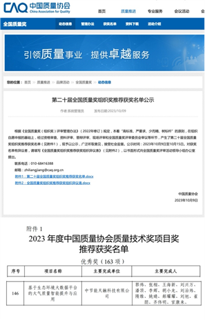 近日,中節(jié)能大數(shù)據(jù)有限公司下屬中節(jié)能天融科技有限公司(以下簡(jiǎn)稱天融科技公司)申報(bào)的科技項(xiàng)目“基于生態(tài)環(huán)境大數(shù)據(jù)平臺(tái)的大氣質(zhì)量智能提升與應(yīng)用”從全國(guó)各行業(yè)1090個(gè)項(xiàng)目中脫穎而出,成功進(jìn)入中國(guó)質(zhì)量協(xié)會(huì)2023年度質(zhì)量技術(shù)獎(jiǎng)獲獎(jiǎng)名單,榮獲質(zhì)量技術(shù)獎(jiǎng)項(xiàng)目獎(jiǎng)優(yōu)秀獎(jiǎng)。