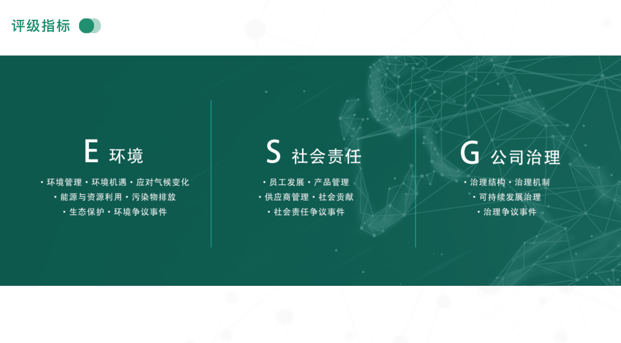 透明化。為解決市面上ESG評價普遍面臨的底層指標(biāo)不透明、評價方法不公開、無法開展深度研究分析的困境,H-ESG在系統(tǒng)頁面中提供從底層評價指標(biāo)到權(quán)重的全透明展示,方便使用者靈活運(yùn)用于研究及投資決策。