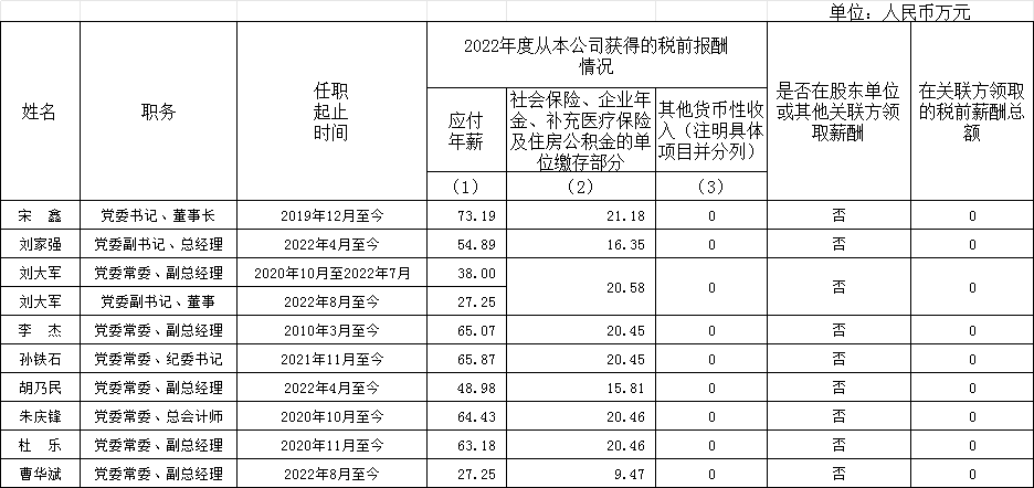 中國(guó)節(jié)能環(huán)保集團(tuán)有限公司公司企業(yè)負(fù)責(zé)人2022年度薪酬情況