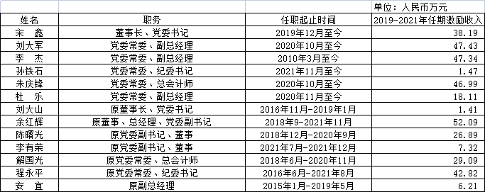 中國節(jié)能環(huán)保集團(tuán)有限公司企業(yè)負(fù)責(zé)人2019-2021年任期激勵收入情況
