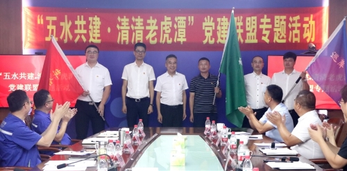 6月29日,中環(huán)水務(wù)黨委下屬湖州中環(huán)黨總支和湖州市水利局直屬機(jī)關(guān)黨委、吳興區(qū)埭溪鎮(zhèn)黨委、德清縣莫干山鎮(zhèn)黨委正式簽約共建湖州市首個(gè)護(hù)水黨建聯(lián)盟——“五水共建·清清老虎潭”黨建聯(lián)盟。 簽約活動(dòng)中,包括湖州中環(huán)黨總支所屬湖州原水黨支部、湖州中環(huán)黨支部在內(nèi)的9個(gè)支部與周邊9個(gè)村分別結(jié)對(duì)簽約。黨員代表接過科普宣傳先鋒、巡庫保安先鋒、守護(hù)清水先鋒三面旗幟,展現(xiàn)出“守好大水缸 走好共富路”的堅(jiān)定決心。 由中環(huán)水務(wù)投資建設(shè)運(yùn)營的老虎潭水庫及引水工程供水范圍覆蓋吳興區(qū)和南潯區(qū)大部分區(qū)域,是湖州人民生產(chǎn)生活名副其實(shí)的“大水缸”。保護(hù)老虎潭水庫生態(tài)環(huán)境、提高庫區(qū)水質(zhì),事關(guān)湖城居民飲水安全,使命艱巨、責(zé)任重大?!拔逅步āで迩謇匣⑻丁秉h建聯(lián)盟涉及“若水”、“護(hù)水”、“清水”、“廉水”、“樂水”五個(gè)方面的工作,聚焦“清水”與“清廉”兩個(gè)重點(diǎn),以政企合作、市鎮(zhèn)聯(lián)動(dòng)、村級(jí)參與為特色,將為老虎潭水庫的保護(hù)與發(fā)展提供優(yōu)質(zhì)的交流協(xié)作平臺(tái),營造全民護(hù)水的濃郁氛圍。