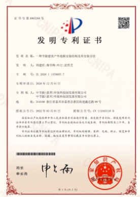 近日,中節(jié)能實(shí)業(yè)發(fā)展有限公司下屬嘉興公司自主申報(bào)的《一種節(jié)能建筑戶外地板安裝結(jié)構(gòu)及其按照方法》的技術(shù)成果通過(guò)國(guó)家知識(shí)產(chǎn)權(quán)局審查,被授予發(fā)明專利權(quán)。