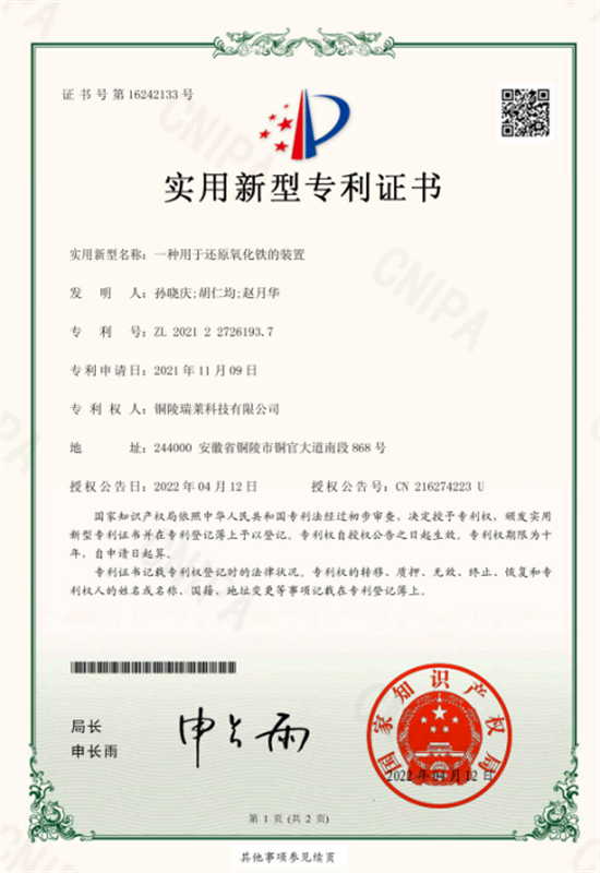 堅(jiān)持成果培育轉(zhuǎn)化。持續(xù)強(qiáng)化對“雙平臺(tái)”(瑞萊科技公司擁有“安徽省企業(yè)技術(shù)中心”和“安徽省工程技術(shù)研究中心”)的維護(hù),組織實(shí)施階段性科研任務(wù),提前完成了安徽省企業(yè)技術(shù)中心2022年度評價(jià)工作;積極開展銅陵市“1155”創(chuàng)新創(chuàng)業(yè)專業(yè)技術(shù)人才團(tuán)隊(duì)年度考核以及“2021年度能效領(lǐng)跑者”項(xiàng)目申報(bào)。以專利為突破口,加強(qiáng)科技成果的培育和轉(zhuǎn)化,今年以來,完成2項(xiàng)安徽省科技成果登記,完成4項(xiàng)專利申報(bào)(其中發(fā)明專利2項(xiàng),實(shí)用新型專利2項(xiàng)),成功獲得實(shí)用新型授權(quán)專利2項(xiàng),累計(jì)專利總數(shù)達(dá)78項(xiàng),遙遙領(lǐng)先行業(yè)其他企業(yè)。同時(shí)努力推動(dòng)專利成果在公司生產(chǎn)經(jīng)營中的應(yīng)用,大大提升了公司在激烈市場中的競爭力。2022年第一季度瑞萊科技公司全面完成了各項(xiàng)生產(chǎn)經(jīng)營指標(biāo),成功實(shí)現(xiàn)了“開局穩(wěn)”、“開門紅”。