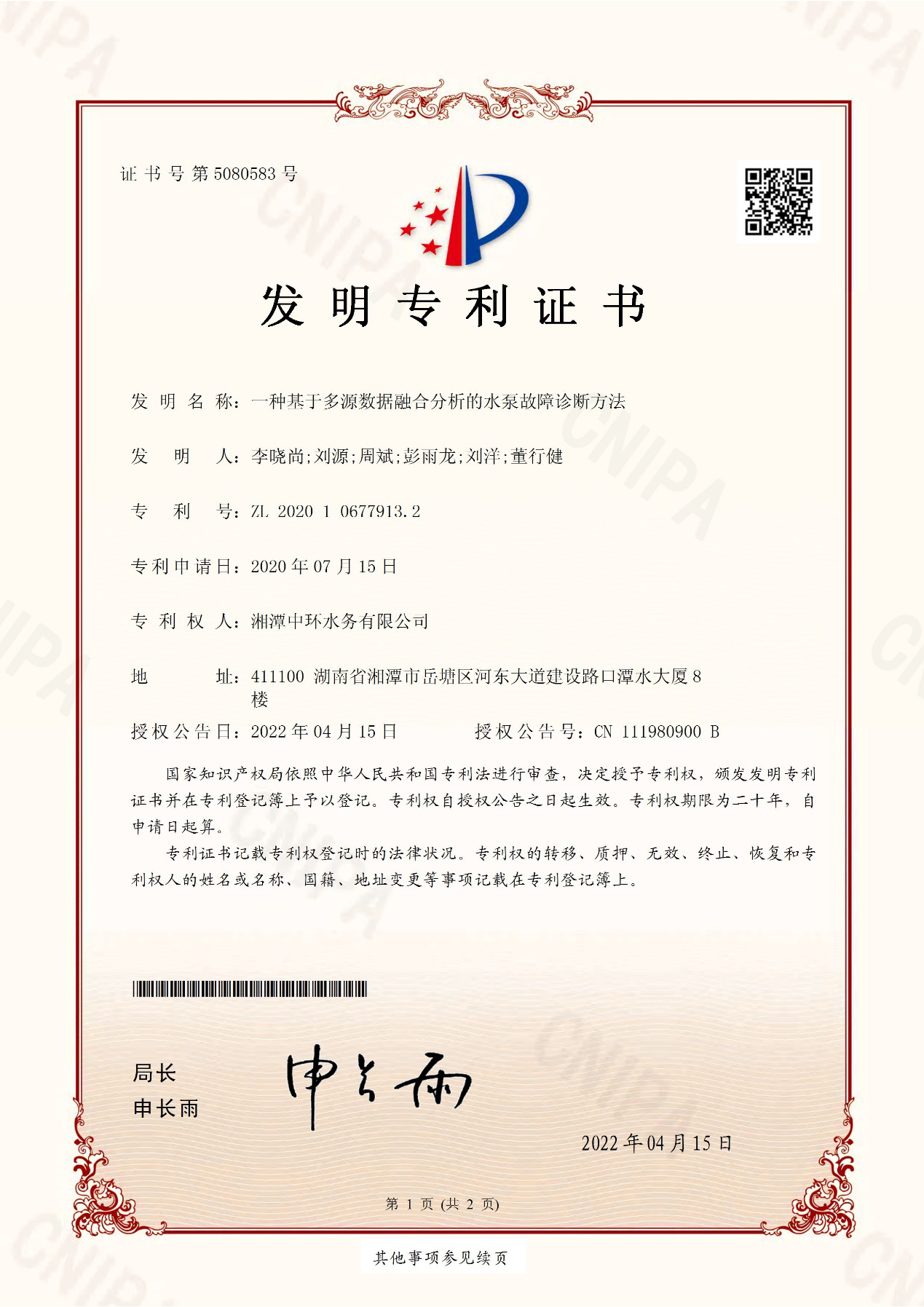 近日,依托中環(huán)水務(wù)牽頭承擔(dān)的2020年度集團(tuán)公司重大科技創(chuàng)新項(xiàng)目《智能水廠整體工藝方案》與《生態(tài)型村鎮(zhèn)污水處理技術(shù)工藝包》的技術(shù)成果,“一種基于多源數(shù)據(jù)融合分析的水泵故障診斷方法”和 “一種蠕蟲(chóng)床化糞池”兩項(xiàng)發(fā)明專(zhuān)利獲得國(guó)家知識(shí)產(chǎn)權(quán)局授權(quán)。