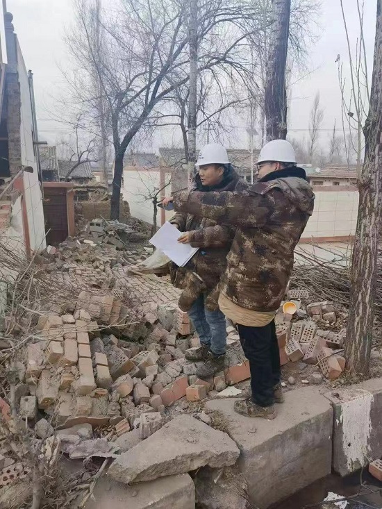 12月18日23時59分,甘肅臨夏州積石山縣發(fā)生6.2級地震,造成重大人員傷亡,部分水、電、交通、通訊等基礎設施受損。災區(qū)氣候異常惡劣,當地氣溫已經下降到零下十幾度,嚴寒已經成為災區(qū)群眾面對的最大困難。 災情發(fā)生后,中國地質所屬蘭冶院緊急采購防寒保障物資并抽調21名結構專家,于12月19日中午趕赴積石山地震災區(qū)開展受損房屋鑒定及安全隱患排查,21名專家團隊分為9組,對所分派的地區(qū)挨家挨戶進行排查。截止12月20日18時,派往災區(qū)進行房屋鑒定的專家團隊共完成大河家鎮(zhèn)四堡子村農房排查616戶。