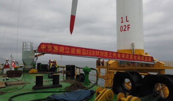 中國節(jié)能陽江海上風(fēng)電項目首臺5.5兆瓦風(fēng)機吊裝成功 |
