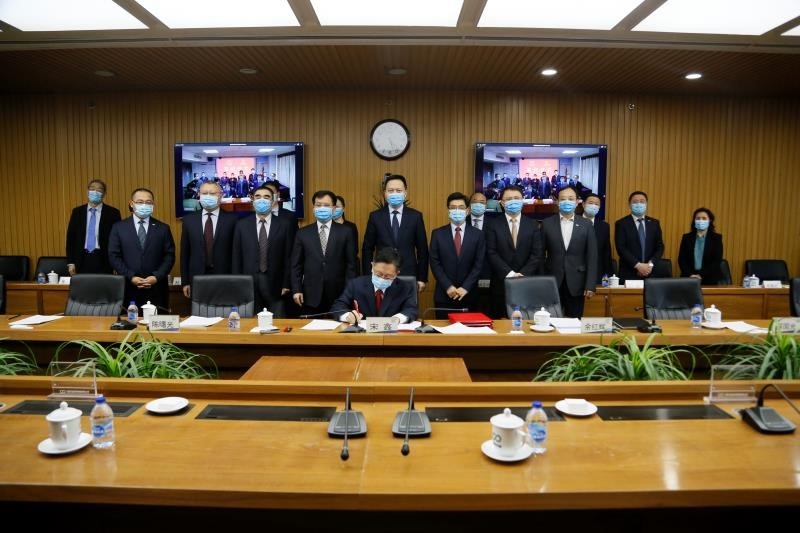 3月13日下午,中國節(jié)能環(huán)保集團(tuán)有限公司與安徽國禎集團(tuán)股份有限公司召開視頻簽約會(huì),簽署股權(quán)轉(zhuǎn)讓協(xié)議。集團(tuán)公司黨委書記、董事長宋鑫,黨委副書記、總經(jīng)理余紅輝等領(lǐng)導(dǎo)班子全體成員,國禎集團(tuán)董事會(huì)主席李煒,董事會(huì)副主席、黨委書記常先米、總裁李松珊等管理團(tuán)隊(duì)成員出席視頻會(huì)議,會(huì)議由余紅輝、常先米主持。