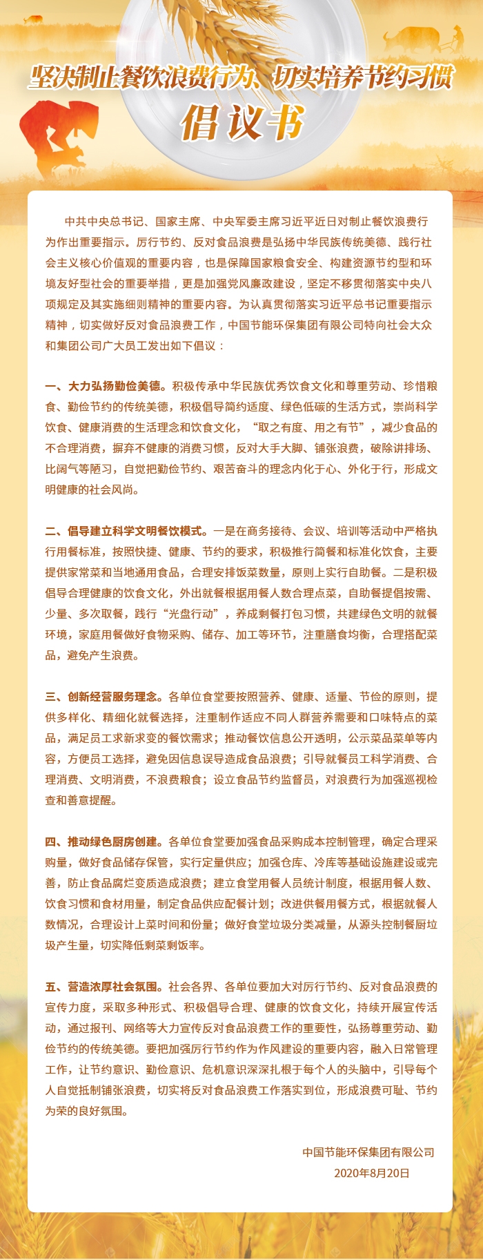 堅(jiān)決制止餐飲浪費(fèi)行為、切實(shí)培養(yǎng)節(jié)約習(xí)慣倡議書