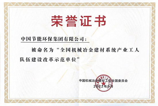 中國節(jié)能榮獲“全國機械冶金建材系統(tǒng)產(chǎn)業(yè)工人隊伍建設(shè)改革示范單位” |