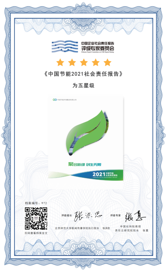 會上,集團(tuán)公司發(fā)布了《中國節(jié)能2021社會責(zé)任報告》,向社會展示了2021年度中國節(jié)能社會責(zé)任管理與實(shí)踐的最新進(jìn)展與成果。這是集團(tuán)公司連續(xù)發(fā)布的第11份社會責(zé)任報告,并連續(xù)第7年獲得中國企業(yè)社會責(zé)任報告評級專家委員會“五星級”評價。集團(tuán)公司榮獲2022責(zé)任金牛獎“綠色環(huán)保獎”,入選2022年“央企責(zé)任管理·先鋒30指數(shù)”。 此外,經(jīng)集團(tuán)公司推薦,中國環(huán)保履行社會責(zé)任案例《開展公眾開放月活動,讓群眾與環(huán)保“零距離”》入選《中央企業(yè)社會責(zé)任藍(lán)皮書(2022)》。