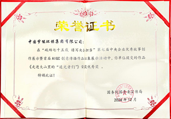 中國(guó)節(jié)能作品榮獲第七屆中央企業(yè)優(yōu)秀故事暨首屆AIGC創(chuàng)意傳播優(yōu)秀作品 |