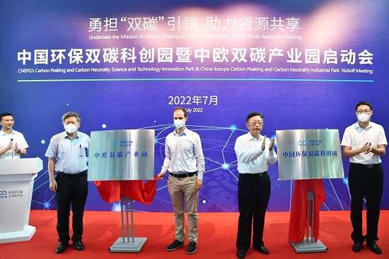 7月5日上午,中國節(jié)能所屬中國環(huán)境保護集團有限公司“中國環(huán)保雙碳科創(chuàng)園暨中歐雙碳產(chǎn)業(yè)園”啟動會在北京順義舉行。集團公司黨委書記、董事長宋鑫出席會議,并與北京市順義區(qū)政府、國家應對氣候變化戰(zhàn)略研究和國際合作中心、中國瑞士商會等機構(gòu)組織代表共同為園區(qū)揭牌。