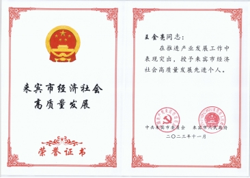 近日,風(fēng)電來賓公司總經(jīng)理王金亮獲得來賓市經(jīng)濟(jì)社會(huì)高質(zhì)量發(fā)展先進(jìn)個(gè)人。