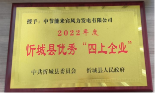 近日,風電來賓公司榮獲2022年度忻城縣優(yōu)秀“四上企業(yè)”榮譽稱號。