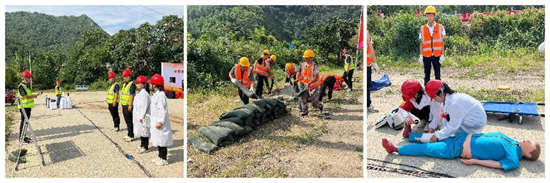 本次防汛應急救援演練模擬太平河上游水庫蓄水過多,河道水位迅速上升,對下游施工范圍造成影響,存在坍塌風險等險情,涵蓋疏散、搶險、救護、善后處理4個階段。演練現(xiàn)場,隨著總指揮一聲令下,各參演單位迅速響應,按照預定方案展開行動。搶險救援隊伍迅速集結(jié),攜帶搶險裝備奔赴受災區(qū)域,裝填沙袋、加固堤壩,阻止洪水蔓延;醫(yī)療救護組在現(xiàn)場設立臨時醫(yī)療點,對受傷人員進行緊急救治和轉(zhuǎn)移;交通疏導組迅速對受災區(qū)域周邊道路進行交通管制,確保救援車輛和人員通行順暢。整個演練過程緊張有序,各部門協(xié)同配合,充分展示了防汛應急救援隊伍的實戰(zhàn)能力和良好的精神風貌。