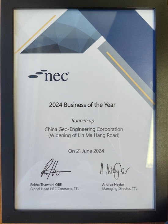 6月21日,英國(guó)土木工程師學(xué)會(huì)(ICE)公布了2024年度“新工程合約NEC(New Engineering Contract)大獎(jiǎng)”獲獎(jiǎng)名單。由中國(guó)地質(zhì)香港分公司承建的“蓮麻坑道路擴(kuò)展工程(HY/2019/04)”項(xiàng)目,憑借互信互助的高水平合作精神榮獲“NEC 2024年度最佳商務(wù)項(xiàng)目”獎(jiǎng)。