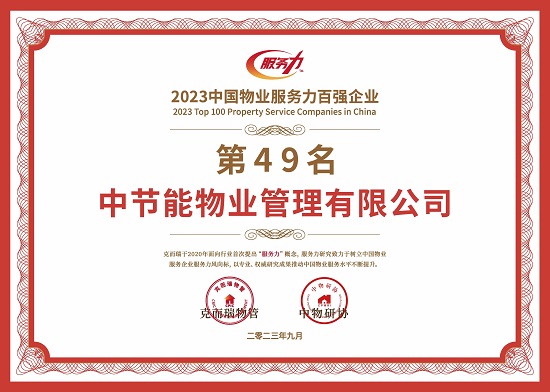 中節(jié)能實(shí)業(yè)下屬物業(yè)公司榮獲“2023中國物業(yè)服務(wù)力百強(qiáng)企業(yè)”等多項(xiàng)榮譽(yù) |