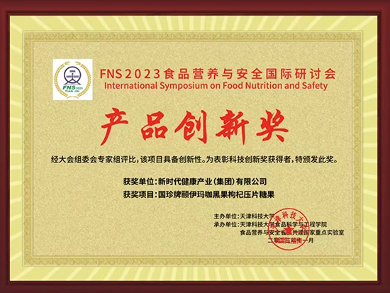 11月17日至19日,由天津科技大學(xué)、天津市食品學(xué)會主辦的FNS2023食品營養(yǎng)與安全國際研討會在天津召開。大會為鼓勵企業(yè)技術(shù)創(chuàng)新與產(chǎn)品創(chuàng)新,向全國征集科技創(chuàng)新新技術(shù)、新產(chǎn)品、新裝備等并評選獎項。健康產(chǎn)業(yè)公司國珍牌頤伊瑪咖黑果枸杞壓片糖果經(jīng)層層篩選,在激烈角逐中勝出,榮獲大會產(chǎn)品創(chuàng)新獎。