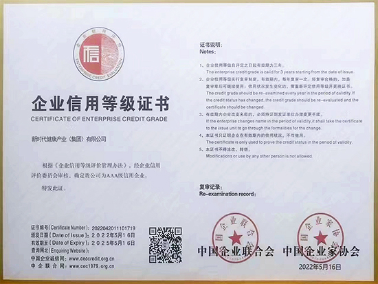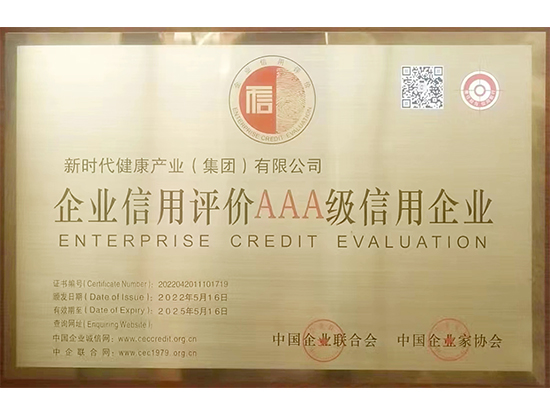 新時(shí)代集團(tuán)下屬健康產(chǎn)業(yè)公司獲評(píng)“AAA級(jí)信用企業(yè)”