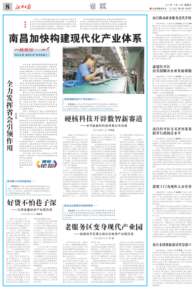 11月10日,江西日報刊發(fā)江西南昌貫徹落實習近平總書記考察江西重要講話精神的生動實踐首篇專題報道——《南昌加快構(gòu)建現(xiàn)代化產(chǎn)業(yè)體系》。? 在本次專題中,媒體深入江西公司下屬晶和科技調(diào)研,以《硬核科技開辟數(shù)智新賽道》為題,對晶和科技深耕道路照明生態(tài)鏈,加快數(shù)智化轉(zhuǎn)型,實現(xiàn)企業(yè)持續(xù)高質(zhì)量發(fā)展的創(chuàng)新實踐進行報道。