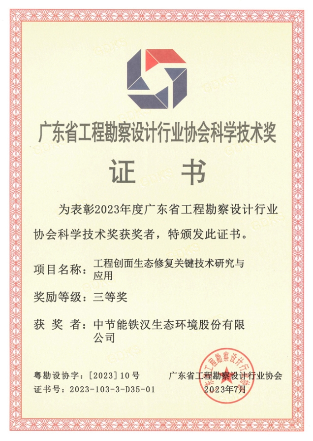 中節(jié)能鐵漢一項生態(tài)修復(fù)技術(shù)獲2023年度廣東省勘察設(shè)計行業(yè)協(xié)會科學(xué)技術(shù)獎三等獎 |