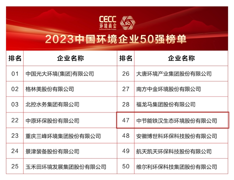 中節(jié)能鐵漢連續(xù)6年榮登“中國環(huán)境企業(yè)50強(qiáng)”榜單 |