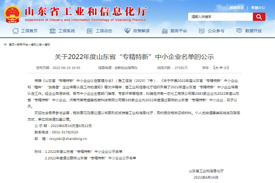 2022年6月16日,中國環(huán)保臨沂公司順利通過2022年度山東省“專精特新”中小企業(yè)復(fù)核。
