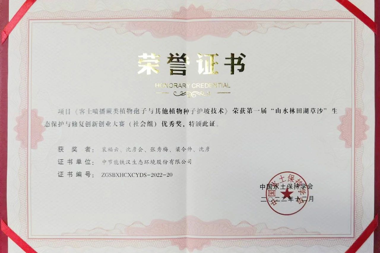 日前,第一屆“山水林田湖草沙”生態(tài)保護與修復創(chuàng)新創(chuàng)業(yè)大賽(社會組)公布獎項,中節(jié)能鐵漢“客土噴播蕨類植物孢子與其他植物種子護坡技術(shù)”項目榮獲優(yōu)秀獎。