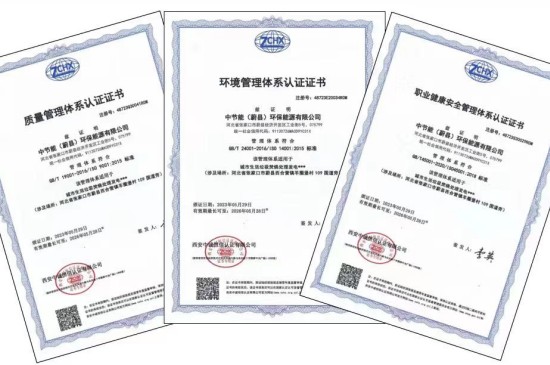 近期,中國環(huán)保蔚縣公司順利通過質(zhì)量、環(huán)境、職業(yè)健康管理一體化認(rèn)證并獲得認(rèn)證證書。