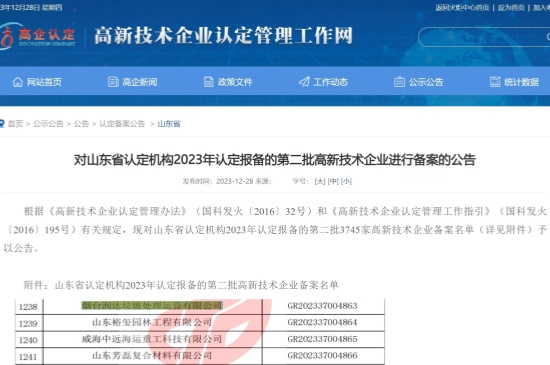 中國環(huán)保潤達(dá)運(yùn)營公司獲批國家高新技術(shù)企業(yè) |