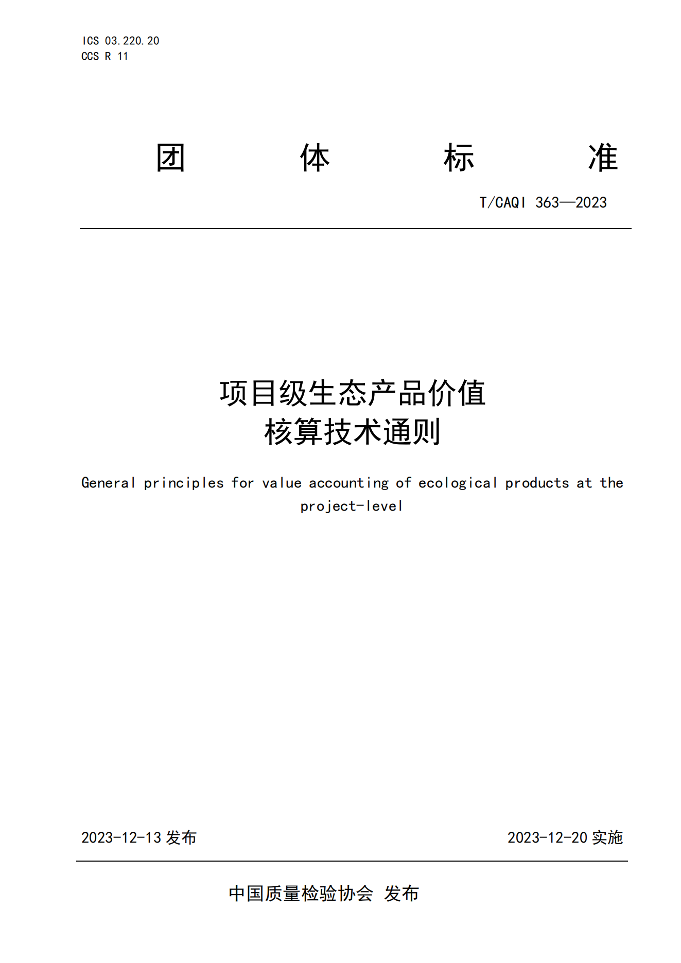 12月13日,研究中心牽頭起草的《項(xiàng)目級(jí)生態(tài)產(chǎn)品價(jià)值核算技術(shù)通則》(T/CAQI 363—2023)團(tuán)體標(biāo)準(zhǔn)獲批發(fā)布,將于12月20日起正式實(shí)施。